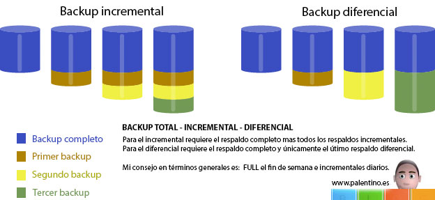 - Els principals problemes d'aquest tipus de còpies són l'espai que ocupen i el temps necessari per realitzar la còpia.